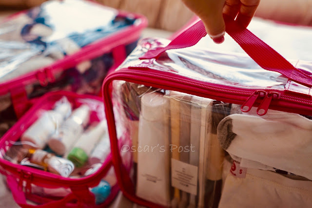 不同的size 的安放你的衣褲、毛巾、等的所有物品,特厚透明環保PVC物料也能夠好好地保護好袋子裡面的物品,還有最重要的一點就是可以在你過海關突然要打開行李時避免一些尷尬時刻。( 試過一二次因為有帶小朋友是可以容許攜帶安全剪刀及水 ,但還是需要打開行李受檢)