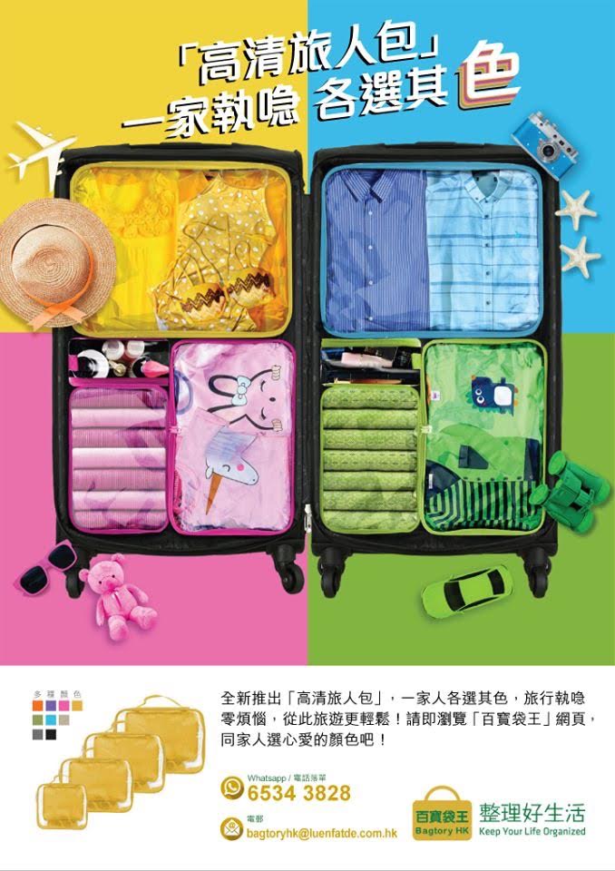 平時我就有細心收納的好習慣,想要把所有物品分門別類裝進行李箱,還能快速從行李中找出所需物品,不會手忙腳亂靠得是什麼?其實只要利用旅行收納袋就能讓你輕鬆解決煩惱。 分享過很多次我的愛牌百寶袋王 Bagtory HK,它的高清儲物袋透明環保PVC物料,實用耐用之餘,東西一目瞭然,把所有麻煩收納事也一併分類好了。